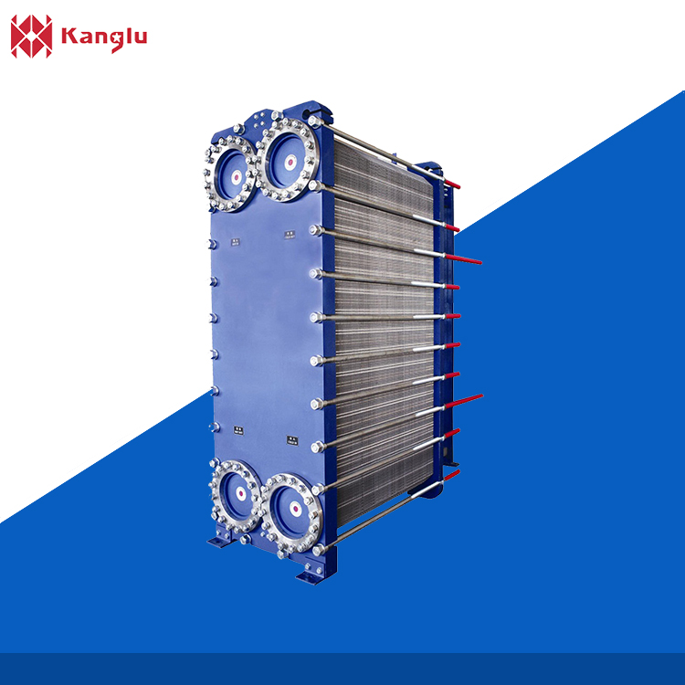 1. 板式换热器的换热效果是有目共睹的且在各个行业都有很好的应用。它的正常使用需要各种结构的直接配合,内部结构简单:换热器由上、下导梁、固定压板、活动压板、管道接口、换热板、板式密封、压紧螺栓等部件组成。换热板按工艺流程组装,固定压板和活动压板的孔周围贴有封条。在组装过程中,热交换板带有密封件的一侧面向可移动压板,并且交替组合的板组在冷侧和热侧形成流体通道。通道通过外部管道接口与相应的介质连通,实现两种介质之间的传热,满足预设的溢流控制要求。传热板是核心部件,板的成型工艺和材料特性直接影响密封和传热效率。通常以水作为冷却介质,大部分板材都是不锈钢板,上面压有波纹状的流尖。两个相邻板之间的空间是介质流动通道,当冷热流体在板的两侧流动时,它们通过板交换热量。波纹形成的特殊流道使流体以极低的流速(雷诺数r .约为200)湍动。低雷诺数下的湍流有其自身的除垢作用,有效破坏绝热边界层,降低界面液膜热阻。一般传热系数k在3000-6000 w/m'℃范围内,同时两种介质几乎全逆流流动,传热效率高。在相同的传热效率下,板式换热器只需要管壳式换热器面积的1/2-1/4就能达到相同的传热效果。